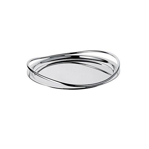 ถาดเสิร์ฟทรงกลมสแตนเลสสีเงิน ถาดบัตเลอร์ ถาดชาโลหะโครเมียมขัดเงา สำหรับแขวนในงานดิวาลี แบบใหม่สั่งทำพิเศษ