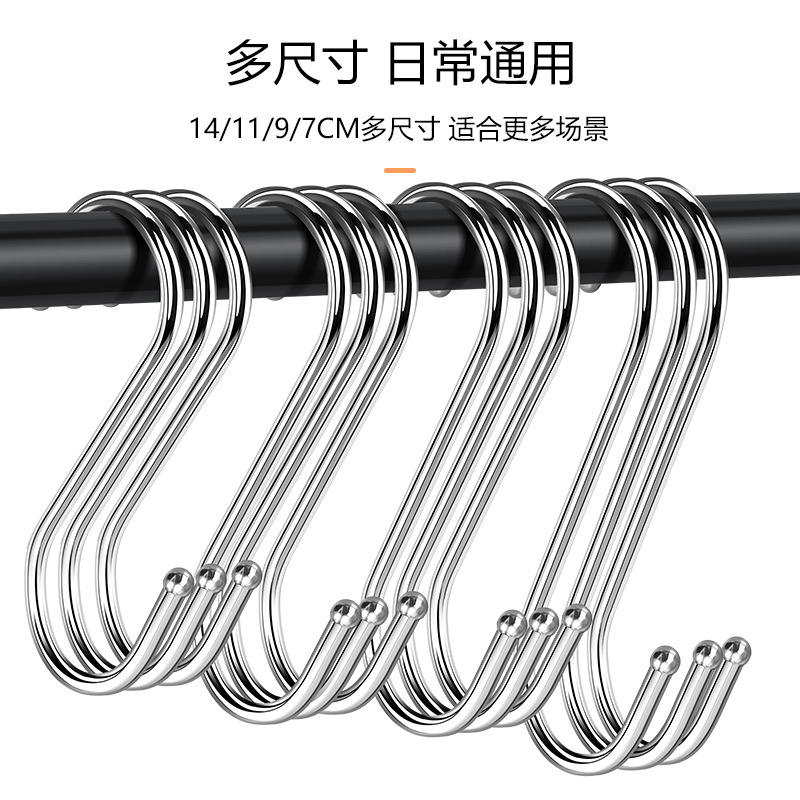 ตะขอรูปตัว S สแตนเลส หนา 3.0-4.0 มม. ดีไซน์หัวบอล สำหรับใช้ในห้องครัวและห้องน้ำ