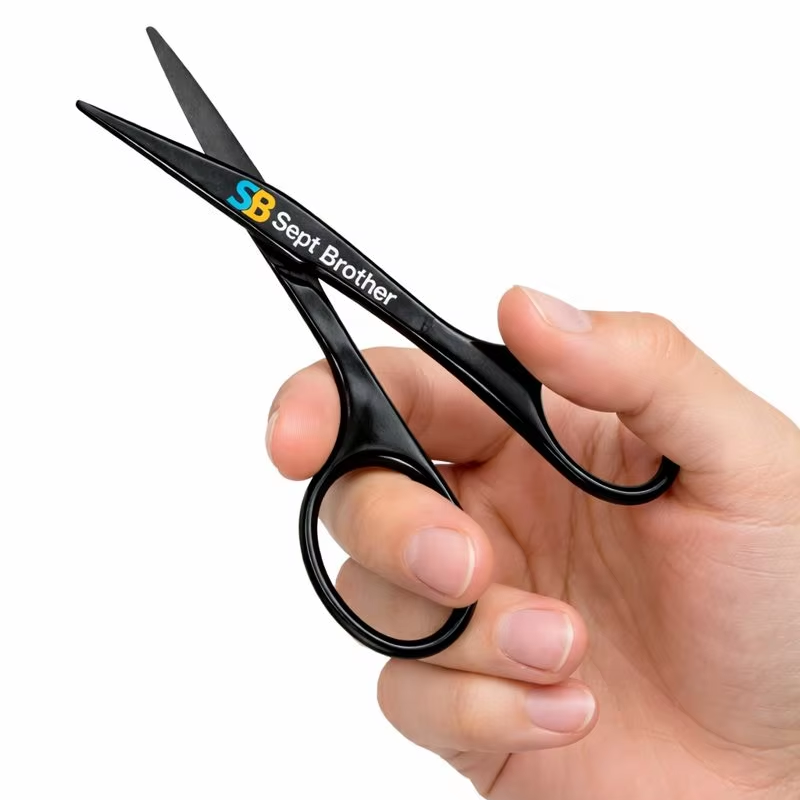 กรรไกรนิรภัยสแตนเลสพร้อมปลายโค้งมนสำหรับการดูแลขนจมูก คิ้ว และใบหน้า