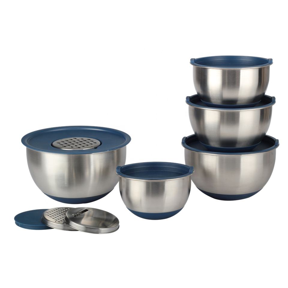 ชุดชามผสมสลัดสแตนเลสชุดชามผสมพร้อมตะแกรงและฝาพีอี