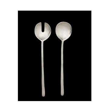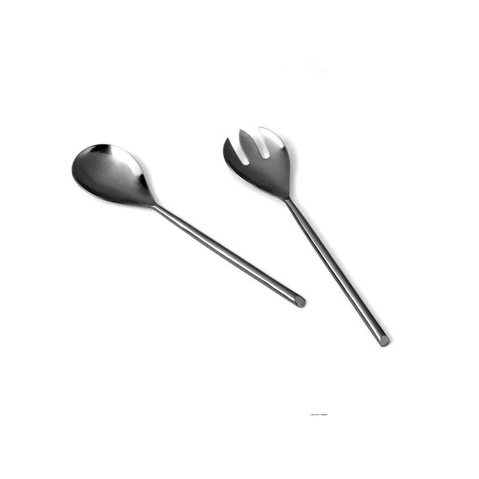 เซิร์ฟเวอร์สลัดโลหะสำหรับเสิร์ฟสลัดใหม่ชุดช้อนส้อมโลหะสแตนเลสสลัดเซิร์ฟเวอร์ด้วยมือปลอมแปลงออกแบบใหม่
