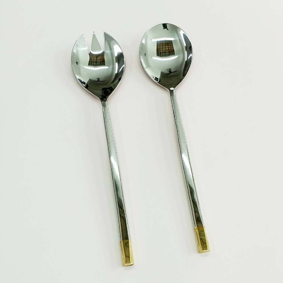ชุดโต๊ะอาหารสแตนเลสสำหรับตกแต่งสลัดเซิร์ฟเวอร์แบบฮอร์นชุดสลัดโลหะ