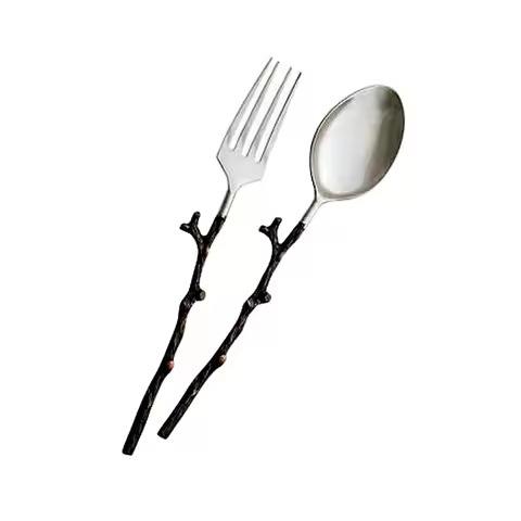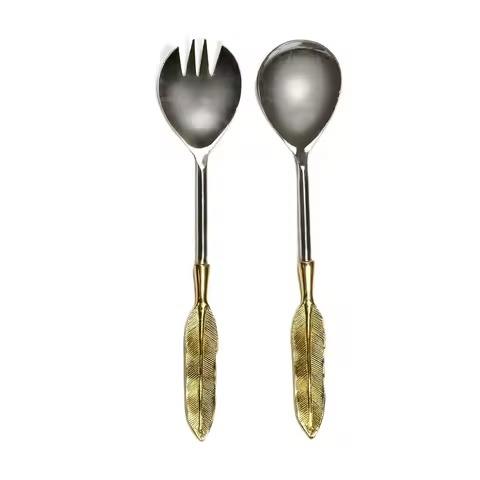 ชุดเสิร์ฟสลัดสแตนเลส พร้อมด้ามจับแบบคลาสสิก ขัดเงาสีเงิน