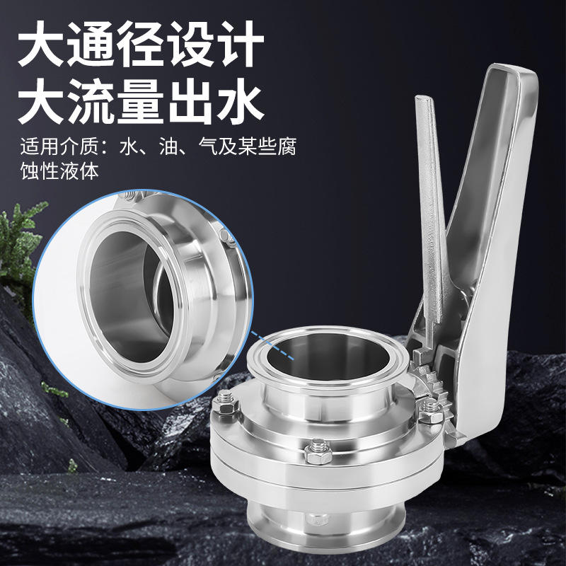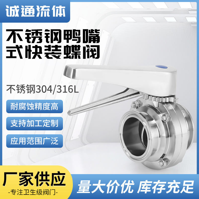 Stainless Steel Sanitary Grade 304 Duckbill Quick-Installation Clamp Butterfly Valve with Multi-Level Adjustable Handle