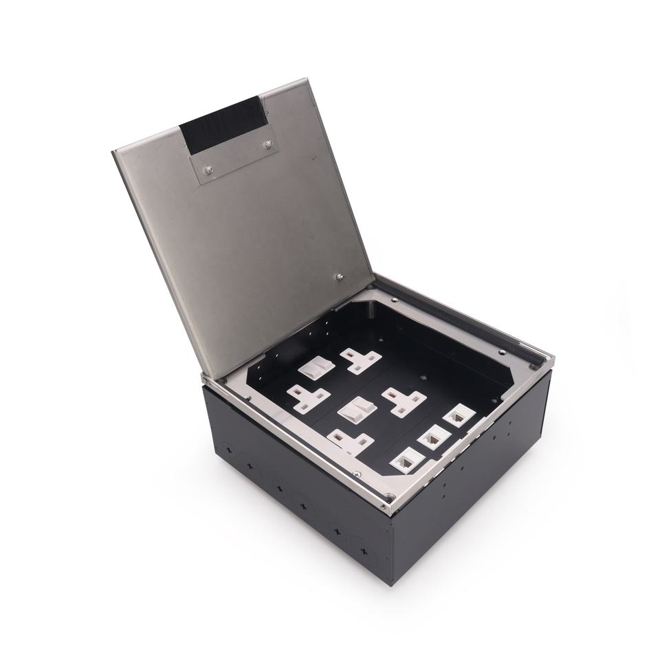 กล่องต่อพื้นสแตนเลสพร้อมฝาปิดแบบฝังที่ถอดออกได้และพอร์ตจ่ายไฟคู่