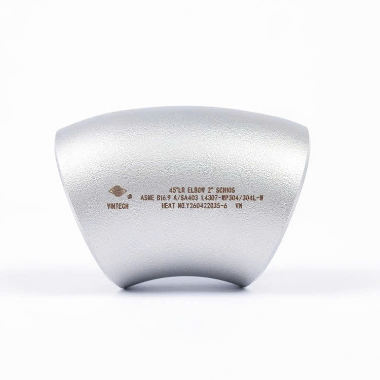 ข้อต่อเหล็กกล้าไร้สนิมแบบเชื่อมไร้รอยต่อ งอ 45 องศา รัศมียาว หัวกลม มาตรฐาน ASME B16.9 A SA403