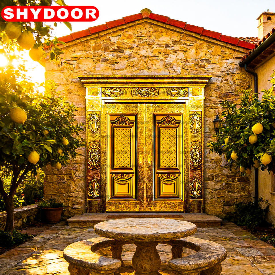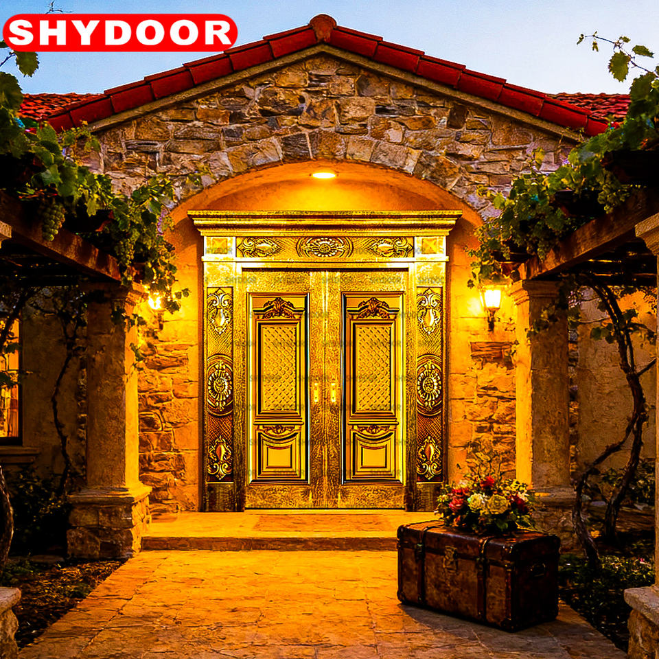 ประตูเหล็กสแตนเลส ประตูทองแดง ประตูเหล็กคู่ หรูหรา สไตล์โบราณ สำหรับวิลล่า บ้านพักตากอากาศ ประตูทางเข้าระดับพรีเมียม