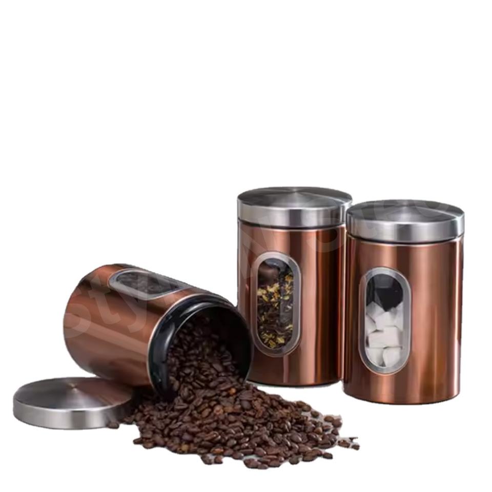 ชุดกระป๋องสแตนเลสสีเข้าเครื่องล้างจานปลอดภัยกล่องอาหารโลหะโถใส่ชาน้ำตาลกระป๋องสำหรับใช้ในครัว