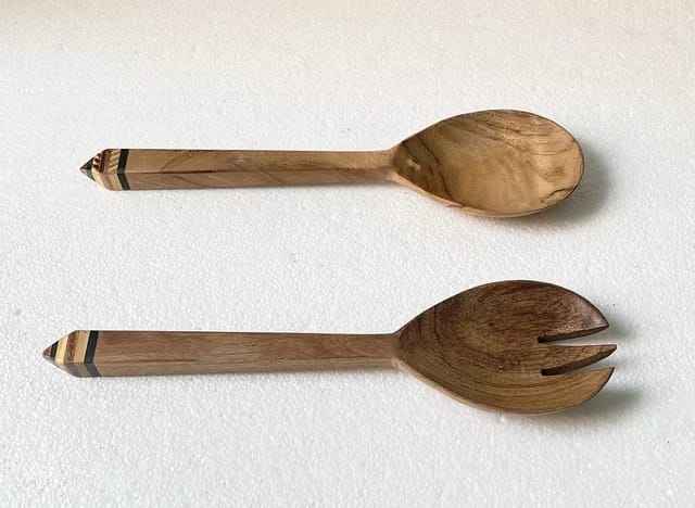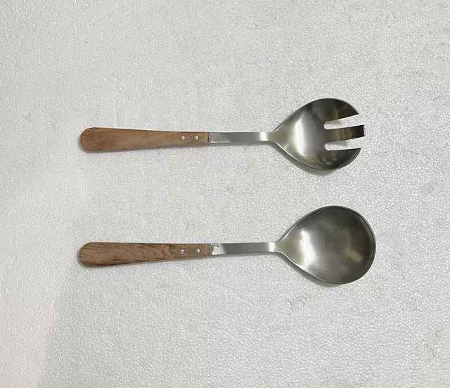 Stainless Steel Serving Spoon for Soup for Giveaways Durable Metal Material Flatware Sets With Acacia Wood Rice & Salad Spoon
