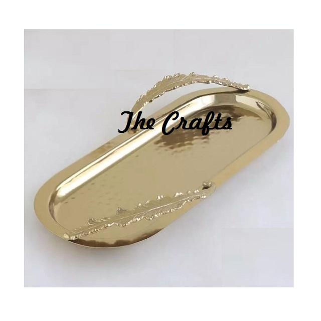 ถาดเสิร์ฟอาหารพร้อมที่จับใบไม้ทำจากสแตนเลสสตีลถาดช็อคโกแลตรูปทรงและขนาดที่กำหนดเองได้
