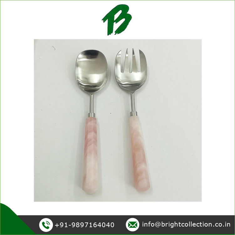เครื่องเสิร์ฟสแตนเลส ผู้ส่งออกชุดเสิร์ฟสลัดด้ามหินธรรมชาติโรสควอตซ์ในราคาที่สะดวก