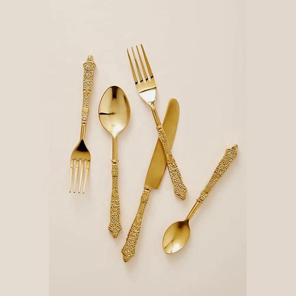 ชุดเครื่องใช้บนโต๊ะอาหาร5ชิ้นมีดส้อมเครื่องล้างจานปลอดภัยใช้ในครัวโต๊ะคาเฟ่บ้านนักออกแบบโลหะจับ