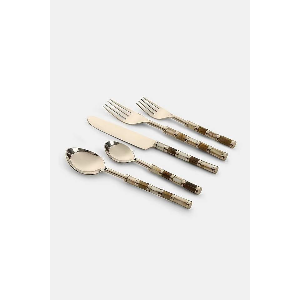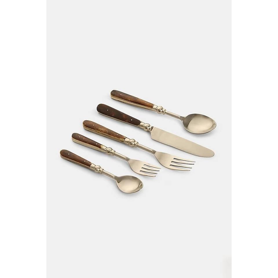 ชุดเครื่องใช้บนโต๊ะอาหาร5ชิ้นทำจากไม้ที่ทันสมัย, เครื่องใช้บนโต๊ะอาหารเครื่องครัวเหมาะสำหรับโต๊ะคาเฟ่บ้านเครื่องเงินมีดไม้สีน้ำตาล