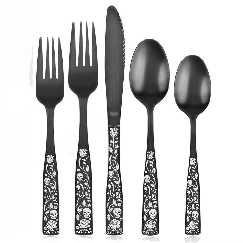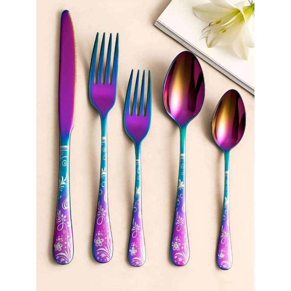 ชุดเครื่องใช้บนโต๊ะอาหาร5ชิ้นทำจากสแตนเลสโต๊ะรับประทานอาหารที่เหมาะสำหรับใช้ในบ้านโรงแรมเครื่องใช้ในครัวชุบหลายสีมีด้ามจับดีไซน์เนอร์