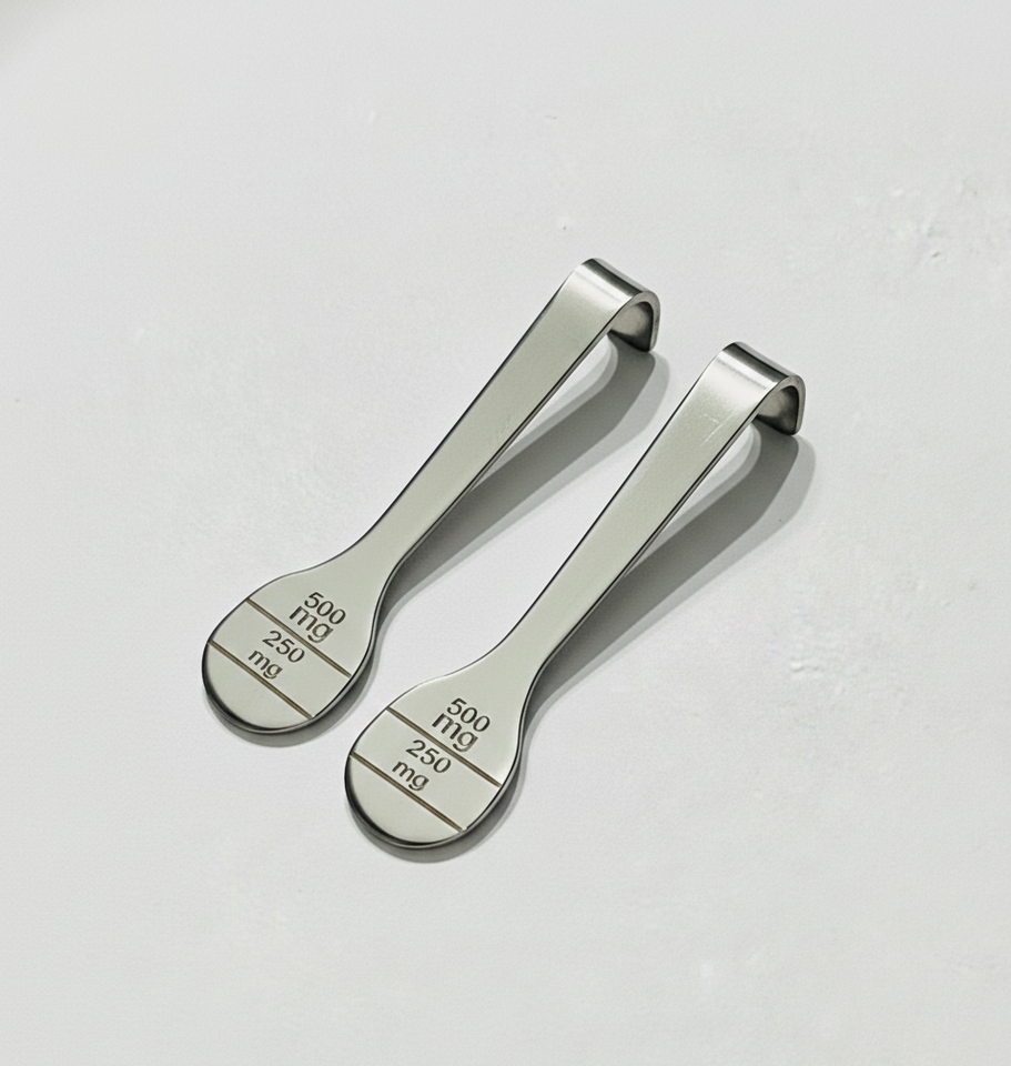 ช้อนชิลลาจิตสแตนเลสทรงโค้ง ช้อนตวงเรซินชิลลาจิตแบบอายุรเวท อุปกรณ์เสริมอาหารเสริม