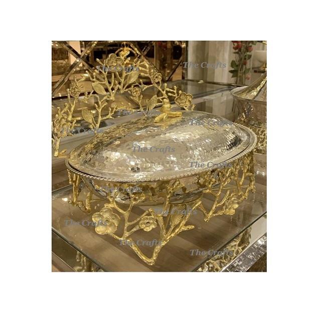 จานอุ่นอาหารสแตนเลสสตีลสำหรับเสิร์ฟอาหารสไตล์คลาสสิกสีเงิน/สีทอง