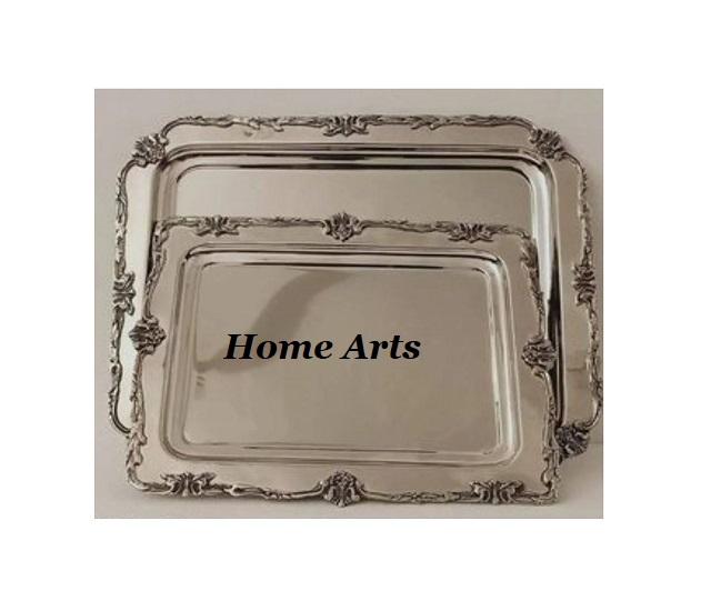 Stainless Steel Silver Color Chocolates Tray Set of 2 Different Sizes Dessert Serving Tray For Events Party Use