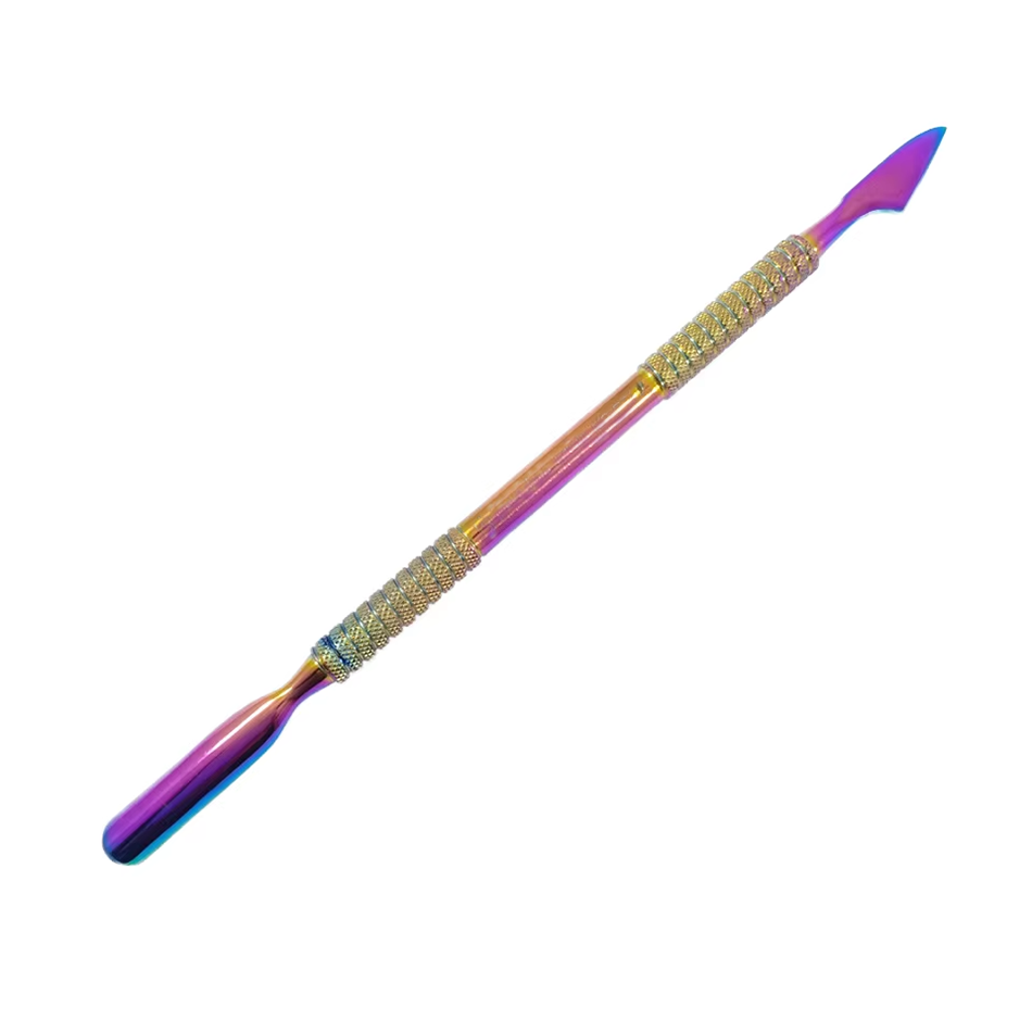 ที่ดันหนังกำพร้าที่ตัดเล็บโลหะสีเงินสแตนเลสเครื่องกำจัดผิวที่ตายแล้วสองด้านเครื่องมือทำเล็บ
