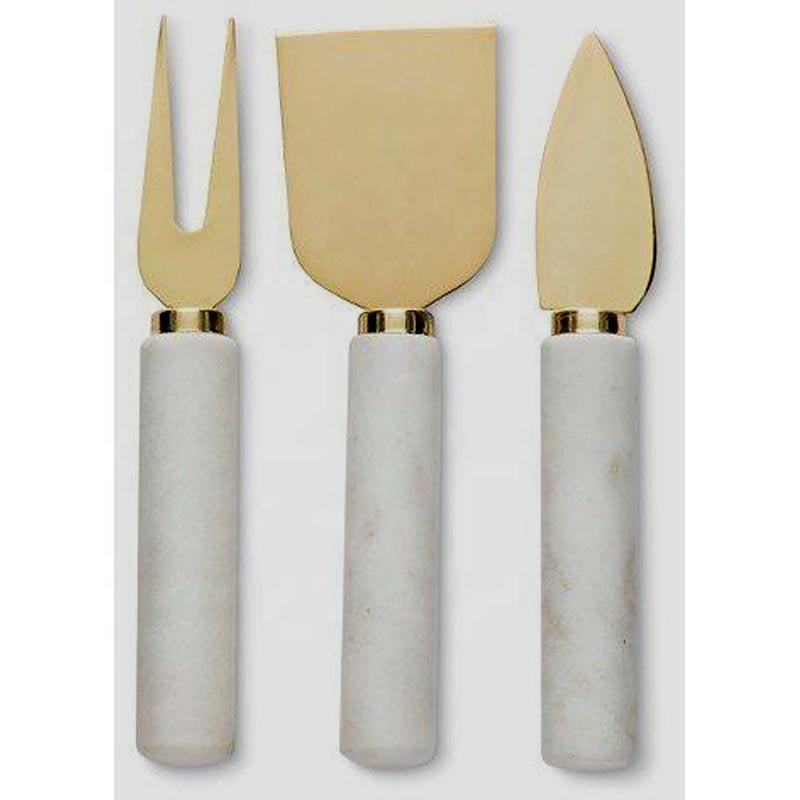 ชุดมีดหั่นชีสชุบเงินสแตนเลสมีดรับประทานอาหารด้ามหินอ่อนขัดเงาสำหรับใช้ในบ้าน