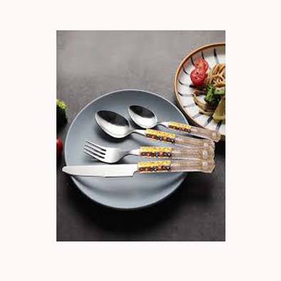 ชุดช้อนตักชุดเครื่องใช้บนโต๊ะอาหารมีด้ามจับดีไซน์ทำจากเรซินใสขัดเงาสีเงินทำจากสแตนเลส