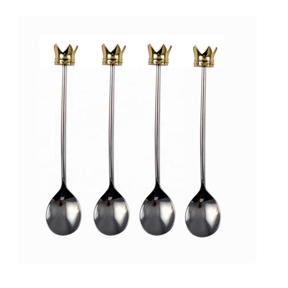 ชุดช้อนสแตนเลสมือจับดีไซน์มงกุฎมงกุฎสีเงินชุดมีดขัดเงาเงิน