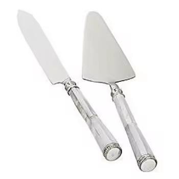 ชุดมีดตัดเค้กพิซซ่าโลหะพร้อมด้ามมุกทำจากสแตนเลสสีเงินสำหรับงานแต่งงาน