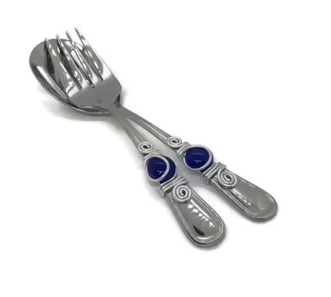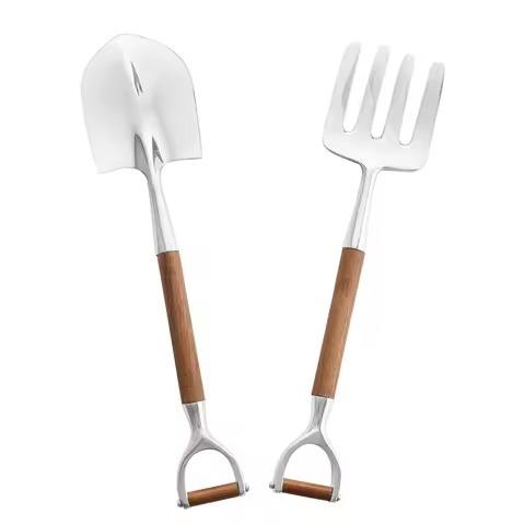 ชุดช้อนส้อมสลัดสแตนเลสสีเงิน ดีไซน์หรูหรา พร้อมด้ามจับทันสมัย เหมาะสำหรับงานในบ้านและงานจัดเลี้ยง