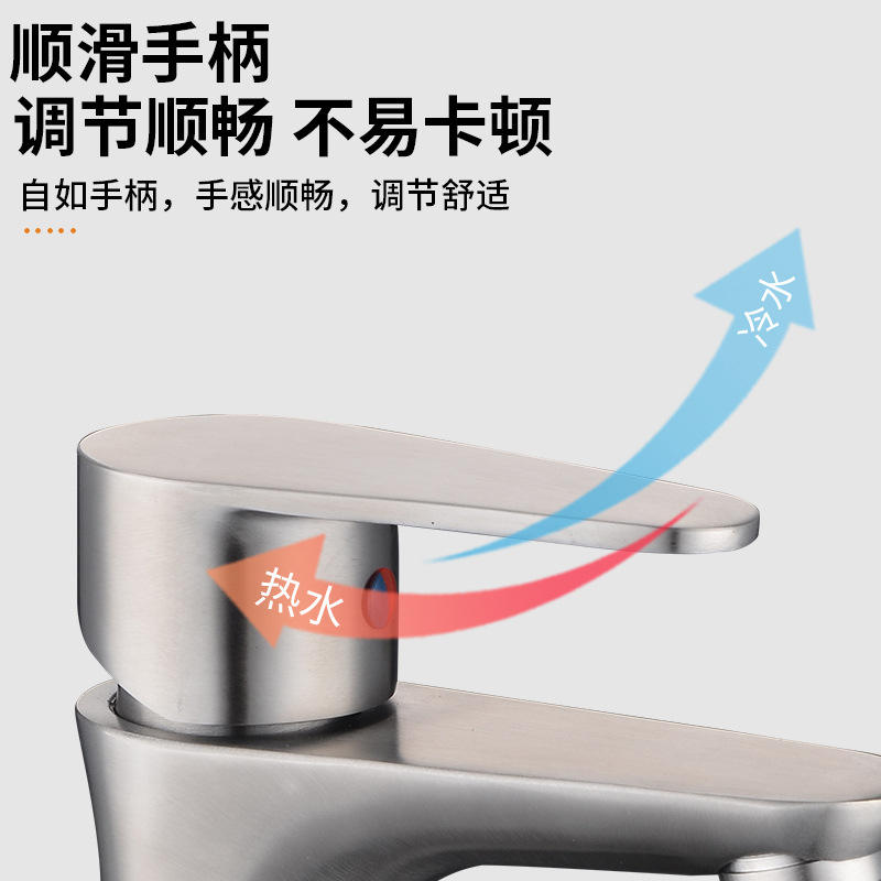 ก๊อกน้ำห้องน้ำสแตนเลสแบบรูเดียว 22.8 นิ้ว แกนวาล์วเซรามิก ก๊อกน้ำอ่างล้างหน้าแบบน้ำร้อนน้ำเย็น