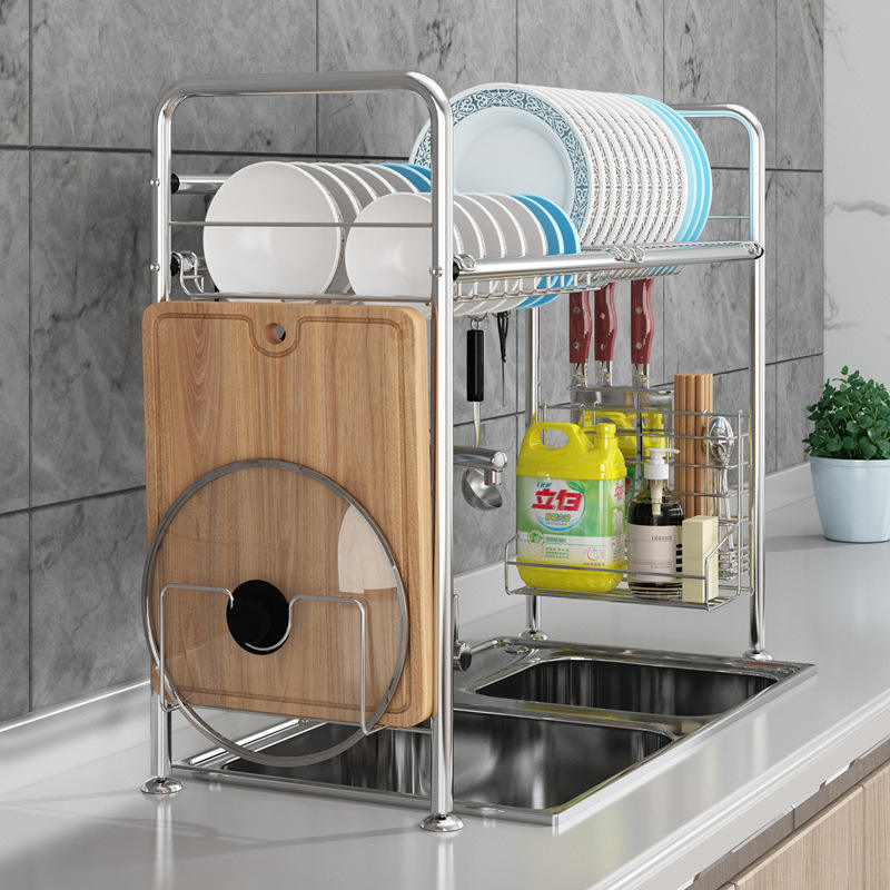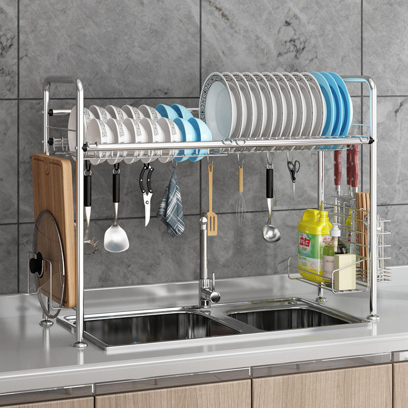 ชั้นวางจานสแตนเลส 2 ชั้น ขนาด L อเนกประสงค์ สำหรับจัดเก็บในครัว