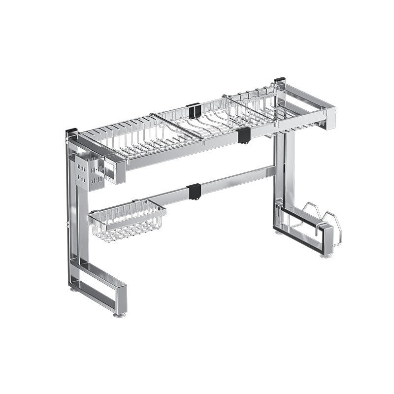 ชั้นวางจานสแตนเลสแบบปรับได้ ที่คว่ำจานสำหรับวางบนเคาน์เตอร์ครัว ดีไซน์ทรงสี่เหลี่ยม ขนาด L