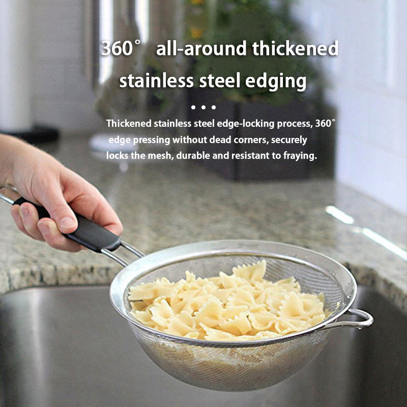 Stainless Steel Skimmer Thickened Black Handle Dishwasher Safe Eco-Friendly Flour Strainer for Dumplings Deep-frying Kitchen