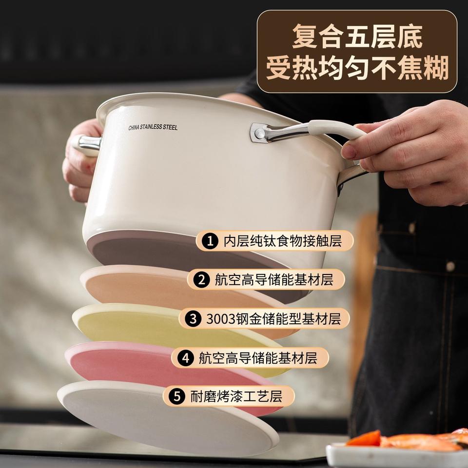 หม้อซุปสแตนเลส 3.1-4 ลิตร แบบไม่ติดกระทะ พร้อมฝาปิด สำหรับเตาแม่เหล็กไฟฟ้า