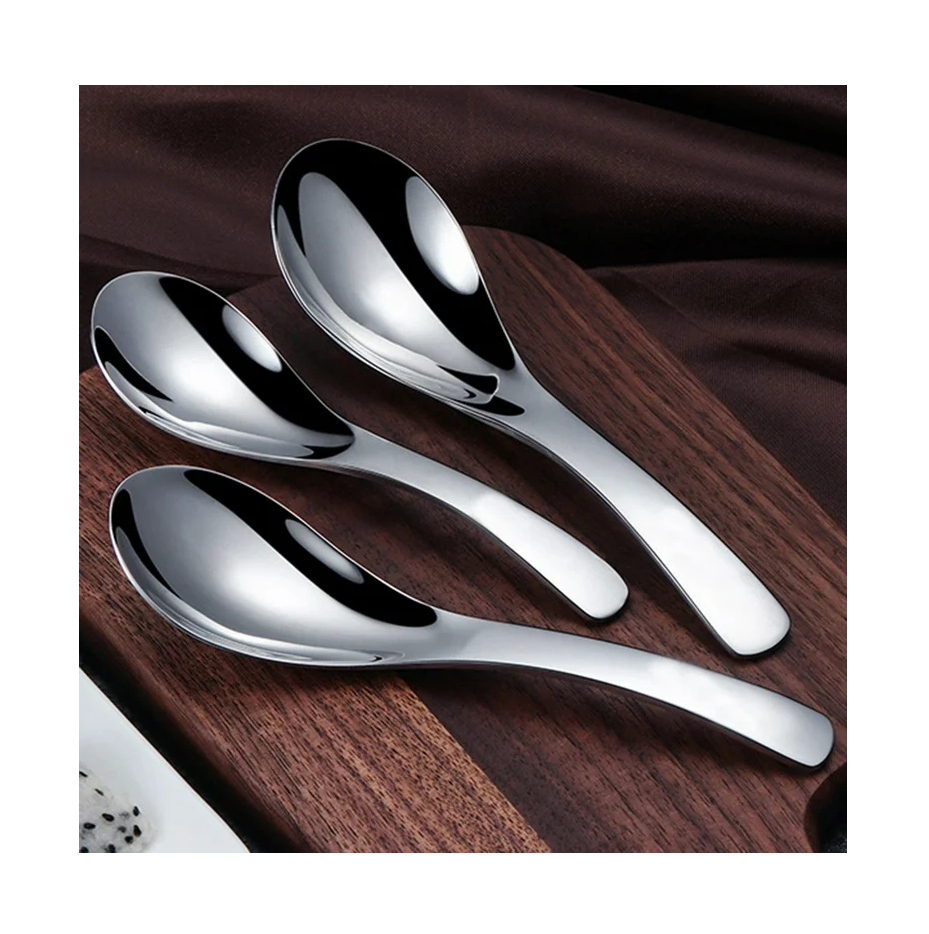 ชุดเครื่องใช้บนโต๊ะอาหารช้อนซุปทำจากสแตนเลสช้อนซุปผักสีเงินขัดเงา