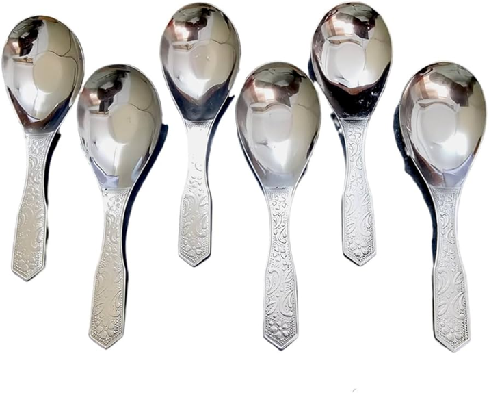 ช้อนซุปสแตนเลส ลายดอกไม้ตอกลาย ด้ามจับสวยงาม ขายส่ง 6 ชิ้น ราคาถูก