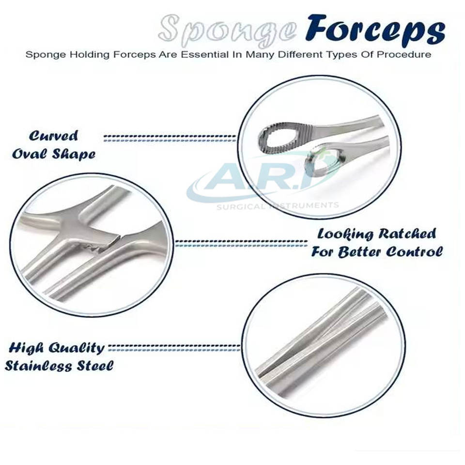 คีมจับฟองน้ำสแตนเลสสำหรับการแพทย์และการผ่าตัด คีมจับฟองน้ำคุณภาพสูง