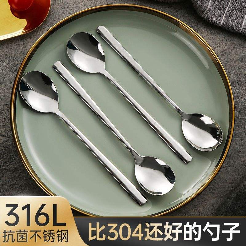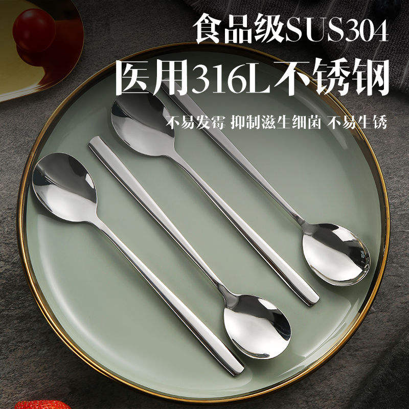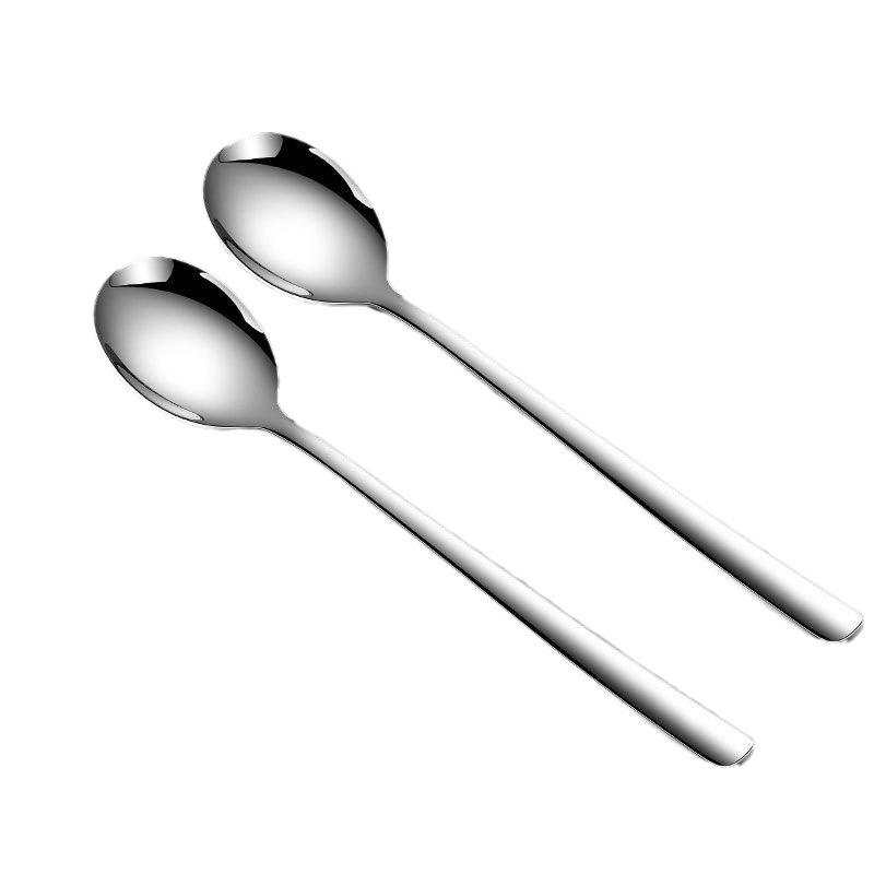 ช้อนสแตนเลส 304 2 ชิ้น ช้อนคนซุปสำหรับใช้ในครัวเรือนแบบหนา ด้ามยาว สไตล์เกาหลี สีพื้น