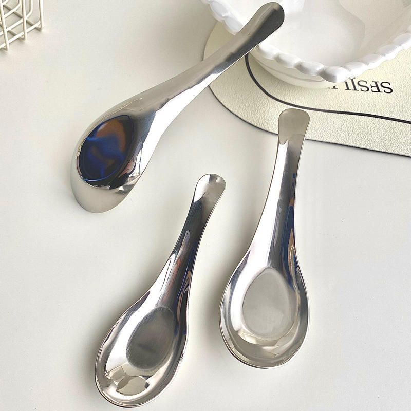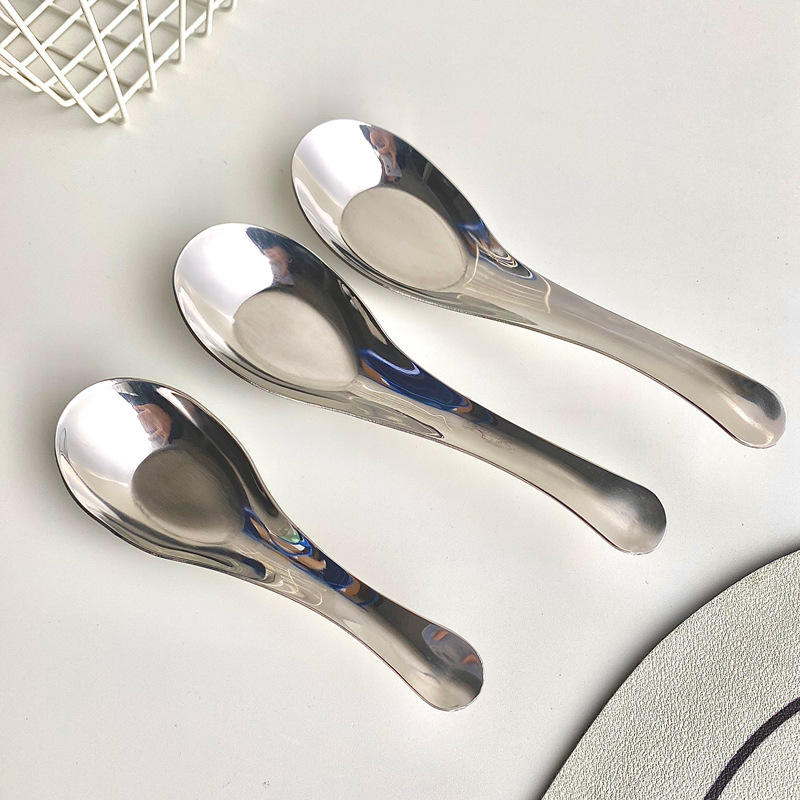 ช้อนสแตนเลสแบบโค้ง 304 สำหรับเด็กทารก ใช้กับอาหารสีทึบ อุปกรณ์บนโต๊ะอาหาร