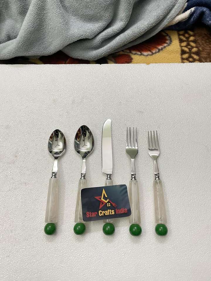 Stainless Steel Spoon Knife Fork 4-Piece Disposable Eco-Friendly Resin Handle Cutlery Set Kitchenware Tableware Accessory