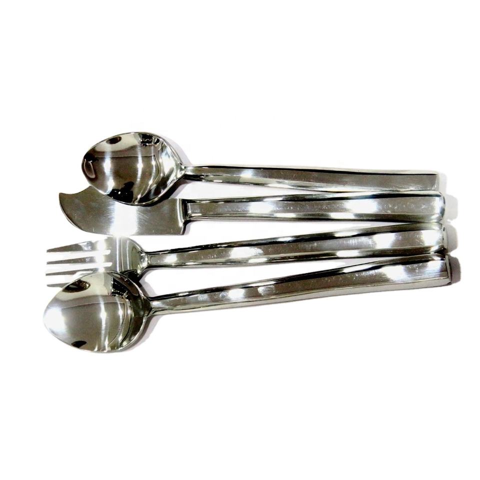 ชุดช้อนส้อมแบบลำลองด้ามแข็งแรงช้อนสแตนเลสชุดมีดขัดเงาสีเงินแนวระนาบชุดเครื่องใช้บนโต๊ะอาหารสุดหรู