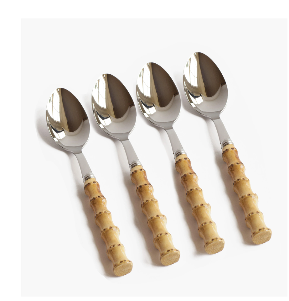 ช้อนสแตนเลสพร้อมด้ามไม้ไผ่ช้อนสำหรับใช้ในห้องครัวที่บ้าน