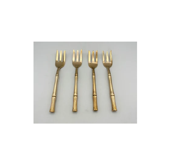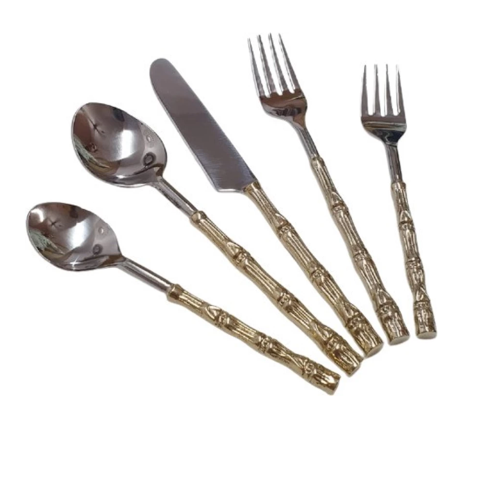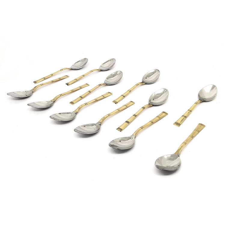 ชุดช้อนสแตนเลสพร้อมที่จับไม้ไผ่ทองเหลืองของขวัญแต่งงานชุดช้อนส้อมพร้อมเกรดอาหาร