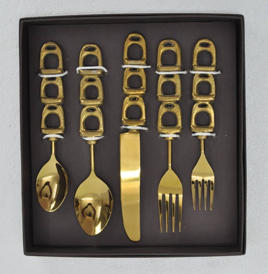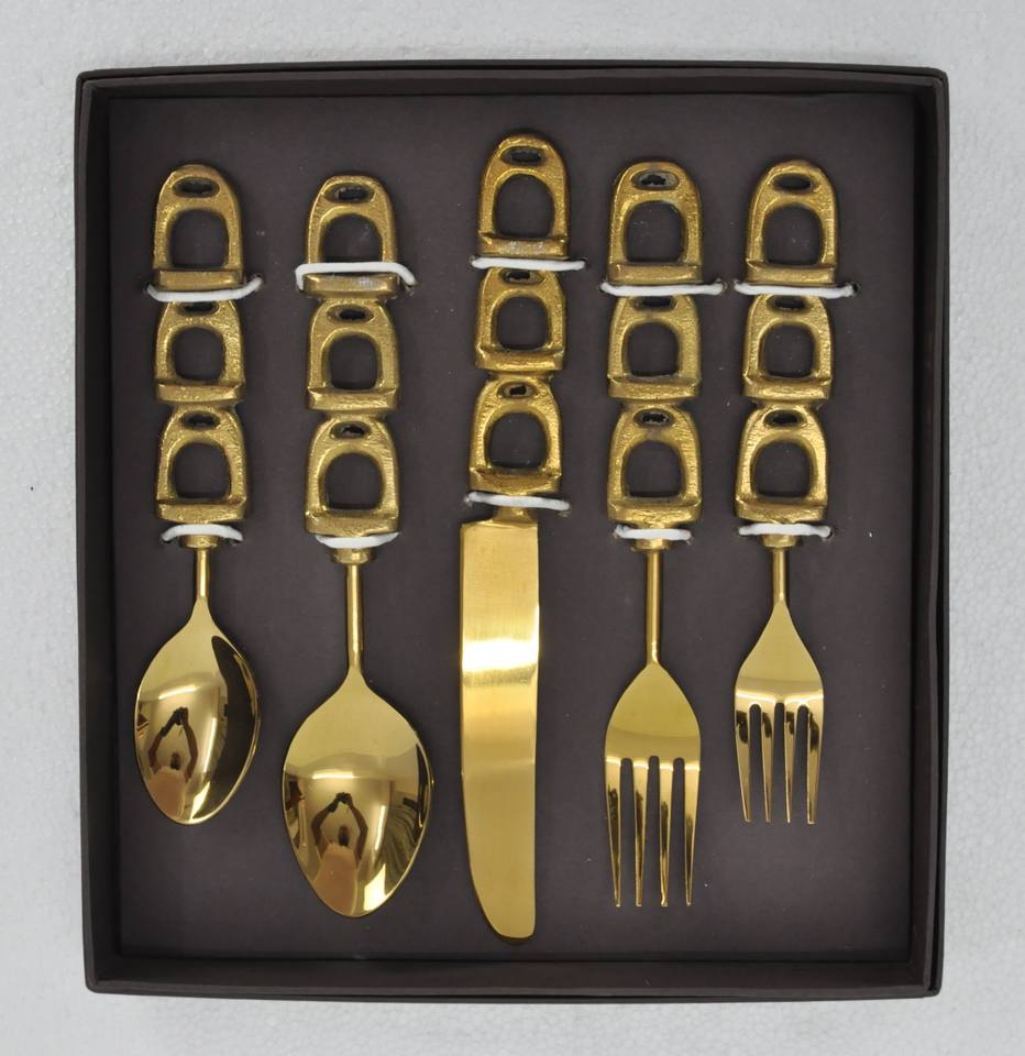 ชุดช้อนส้อมมีดสแตนเลส 5 ชิ้น ชุดอุปกรณ์รับประทานอาหารหรูหราพร้อมด้ามจับแบบเกือกม้า ปลอดภัยสำหรับสัมผัสอาหาร