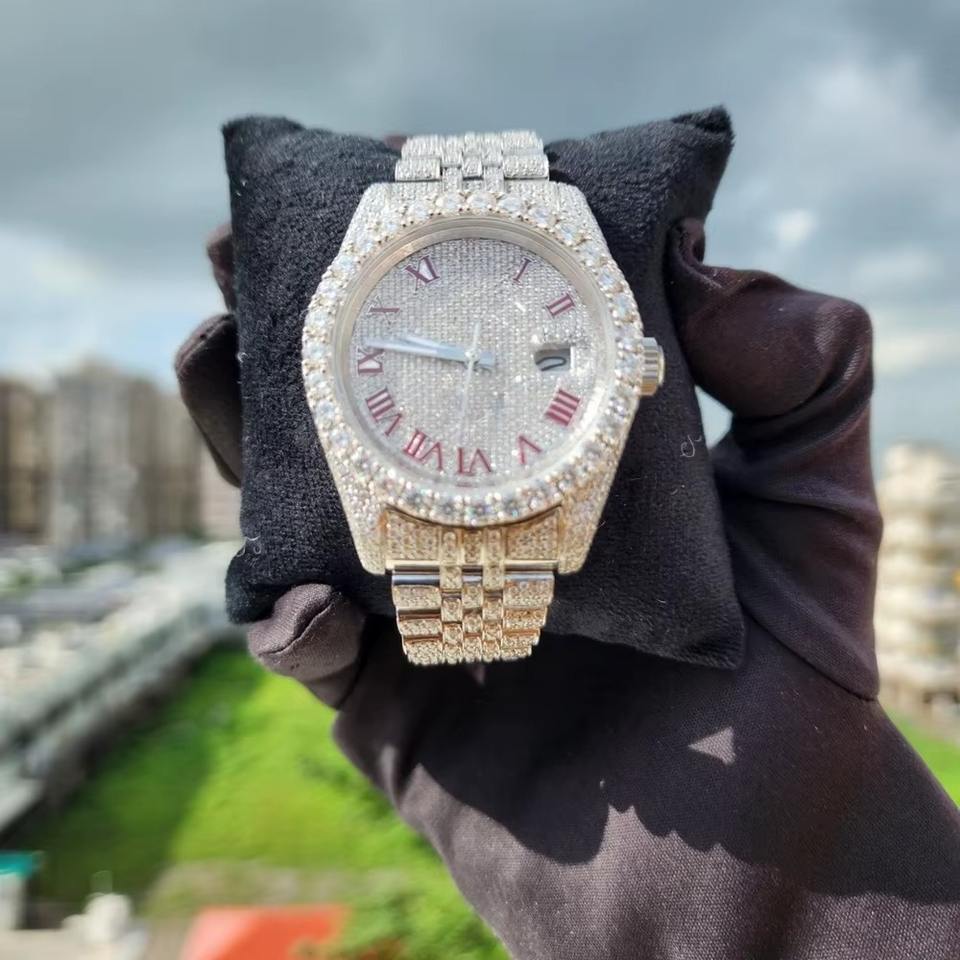 นาฬิกาควอตซ์สแตนเลสสตีลทรงเหลี่ยมประดับเพชรโมอิสซาไนต์ VVS1 หน้าปัดคริสตัลแซฟไฟร์ หรูหราสำหรับทุกเพศ เหมาะเป็นของขวัญ