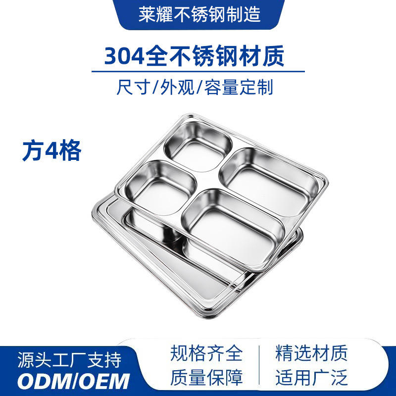ถาดอาหารสี่เหลี่ยมสแตนเลส 304 สำหรับผู้ใหญ่และเด็กพร้อมฝาปิดขนาดใหญ่สีเงินลายทึบ LY-011