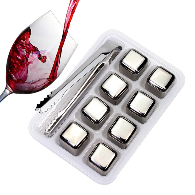 ก้อนน้ำแข็งทรงสี่เหลี่ยมทำจากสแตนเลสสำหรับไวน์วิสกี้หรือเครื่องดื่มอุปกรณ์ในสวนเครื่องดื่มราคาถูก