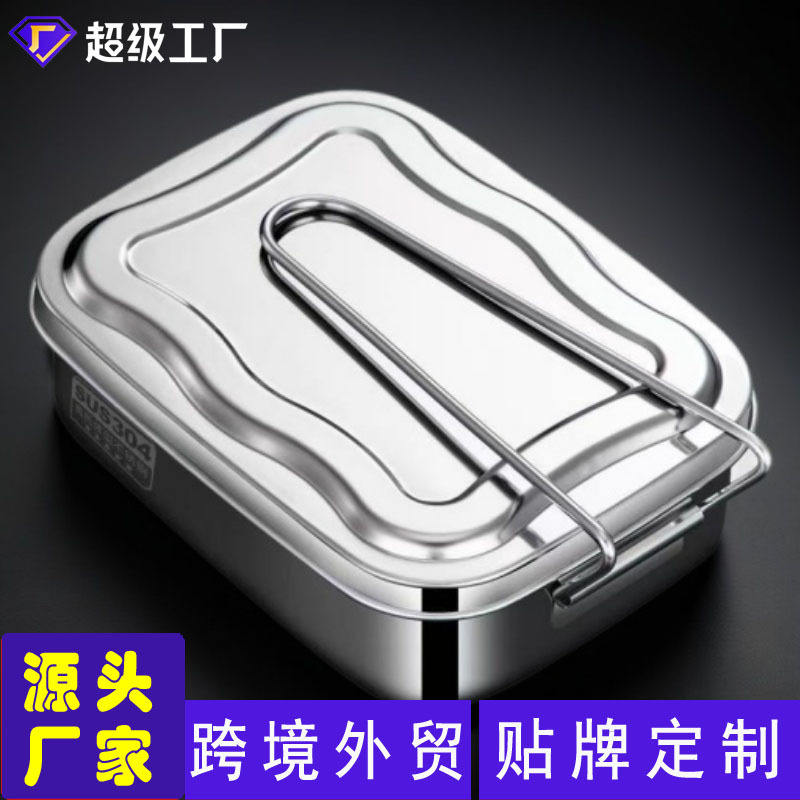 กล่องข้าวสแตนเลสทรงเหลี่ยม ขนาด 16 ซม. 18 ซม. 20 ซม. พร้อมฝาปิดและช่องแบ่งสำหรับนักเรียนใช้ในโรงเรียน