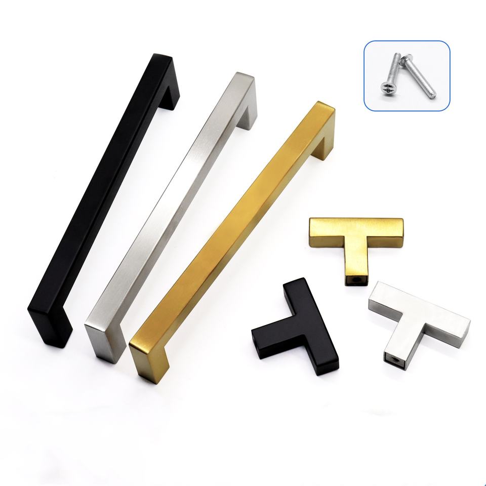 มือจับสี่เหลี่ยมสแตนเลสสำหรับตู้ครัว ลิ้นชัก ตู้เสื้อผ้า ตู้เสื้อผ้าแบบมีลิ้นชัก - ดีไซน์ร่วมสมัย เหมาะสำหรับใช้ในห้างสรรพสินค้า