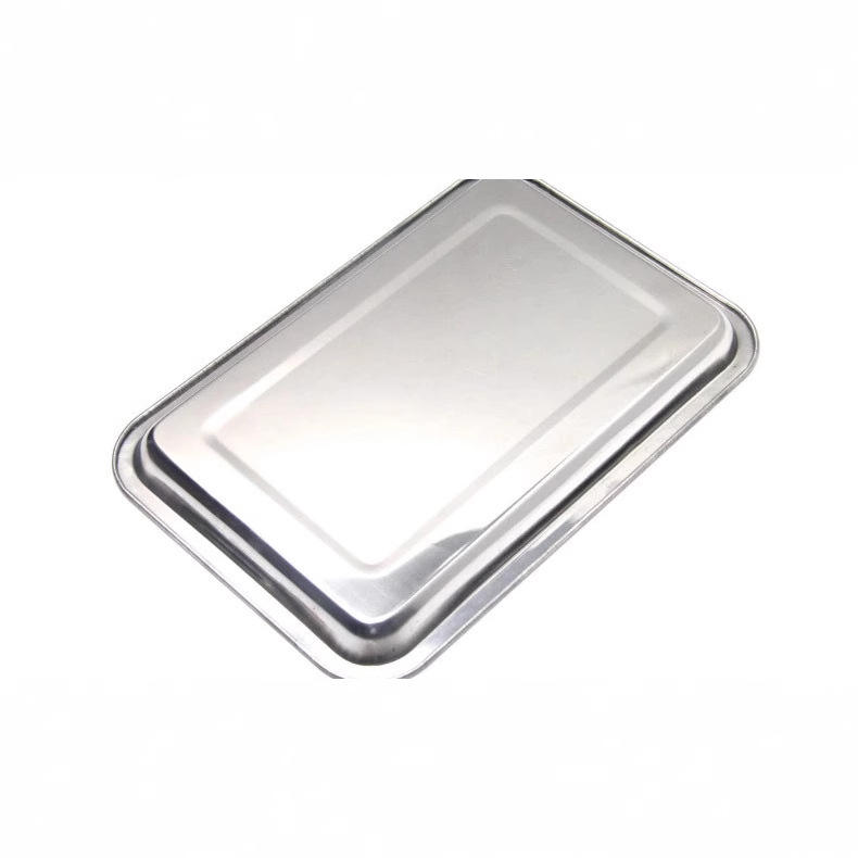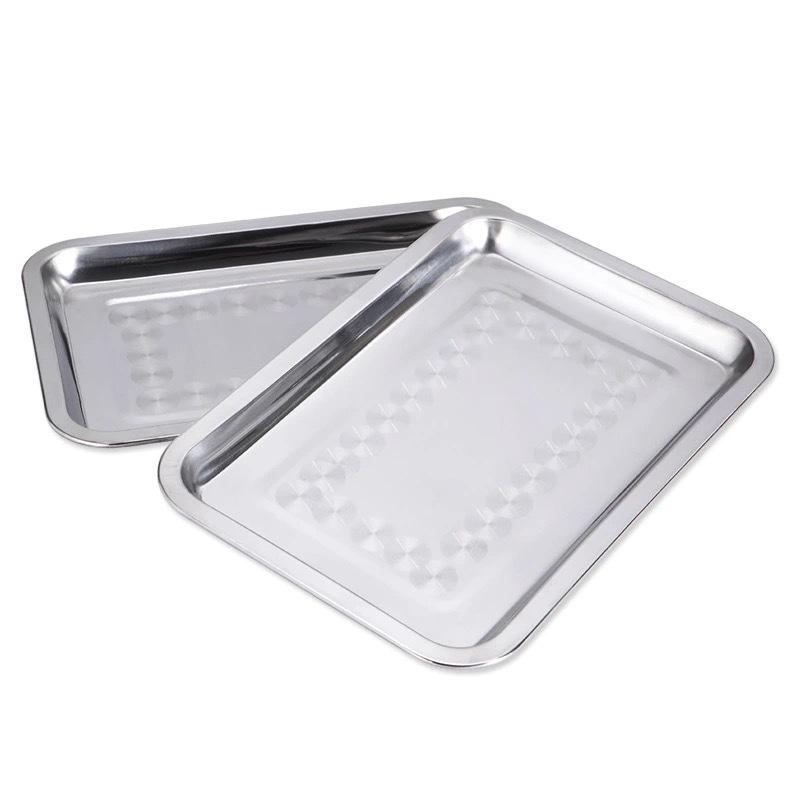 ถาดเสิร์ฟสี่เหลี่ยมสแตนเลส 32x22 ซม. หนาขึ้น ทนทาน ไม่แตกหัก สำหรับเสิร์ฟอาหาร บาร์บีคิว และอาหารเย็น