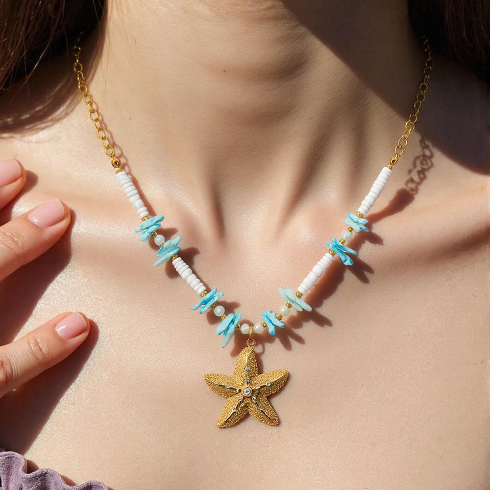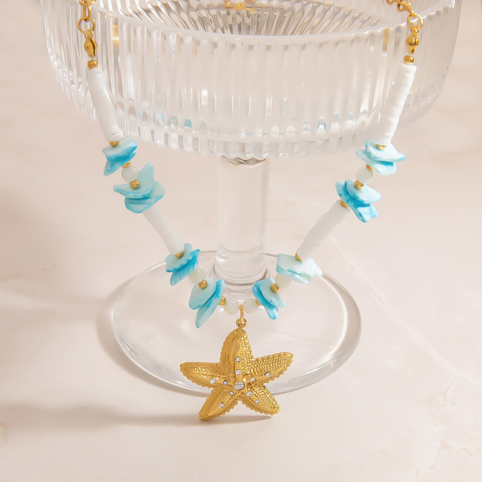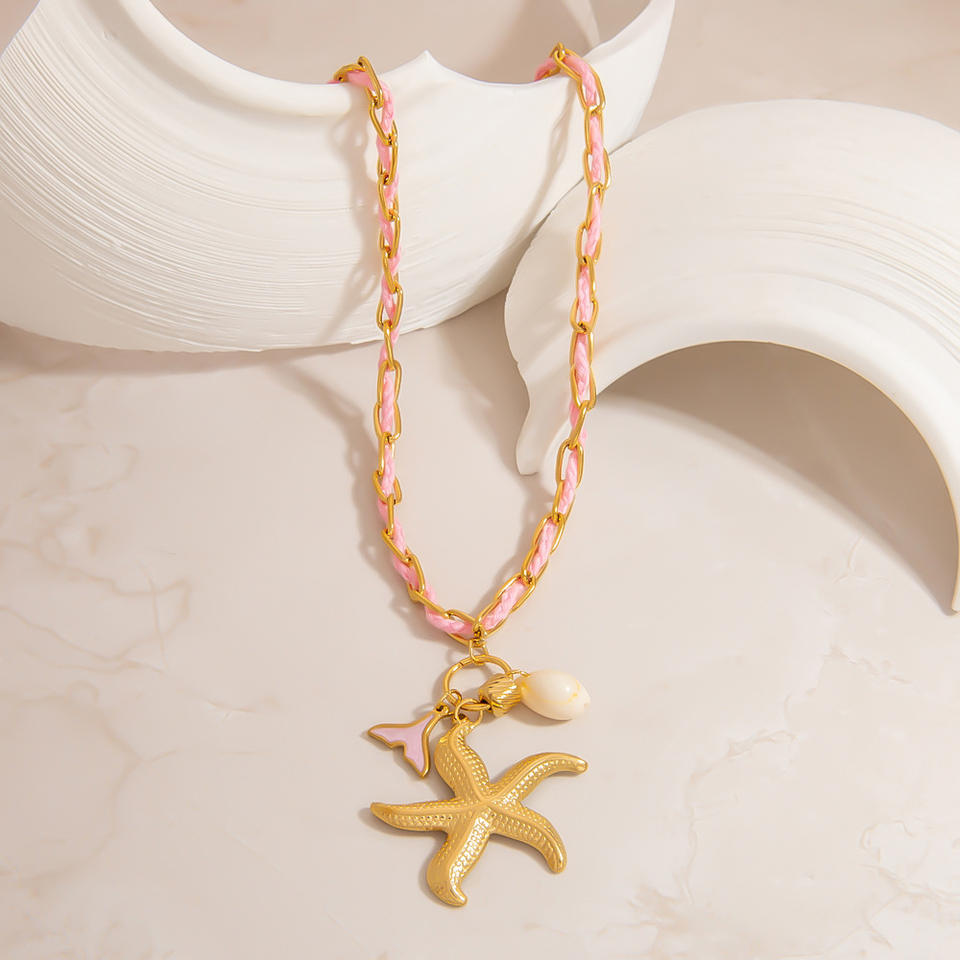 Stainless Steel Starfish Charm Necklace Multilayered Colorful Chain Women's Fashion Jewelry Gift U Shape Pendant XL31771