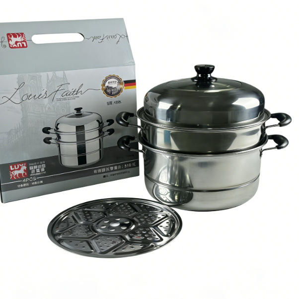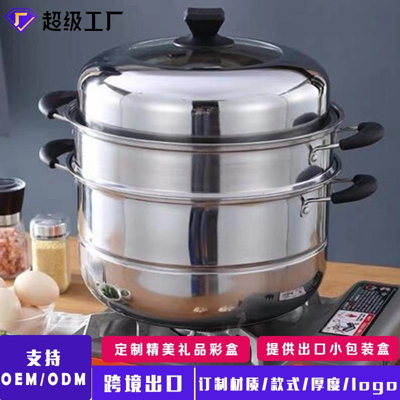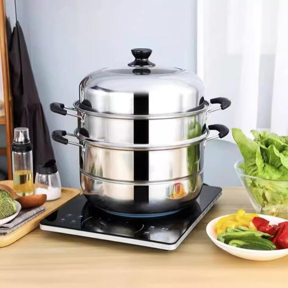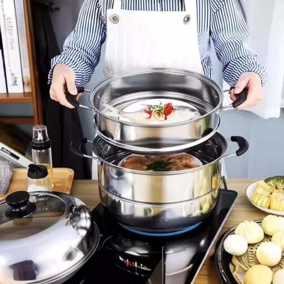 หม้อนึ่งสแตนเลสสองชั้นขนาดใหญ่ หม้อนึ่งไฟฟ้าสำหรับใช้ในครัวเรือน พร้อมฝาปิด สำหรับปรุงอาหาร